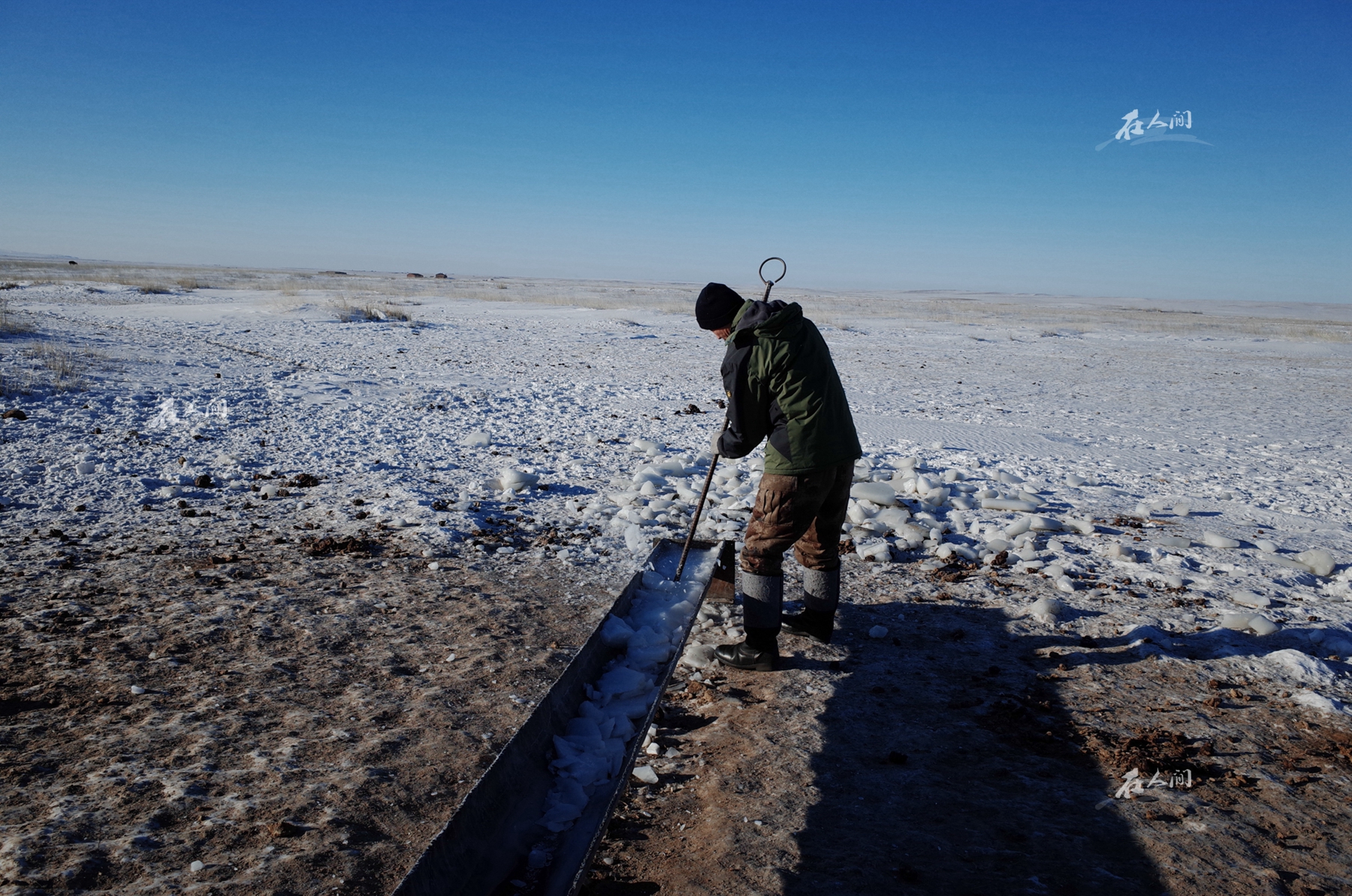 漫长的冬季里,岳父的工作任务很重,每隔两天就会给牲畜饮水。冬季,如果雪下大了,牲畜就会被困在雪中,如果下少了,牲畜将会缺少水源,所以与大自然和谐共存是牧民最为看重的。冬天,牲畜也会和人一样,不断面临挑战。