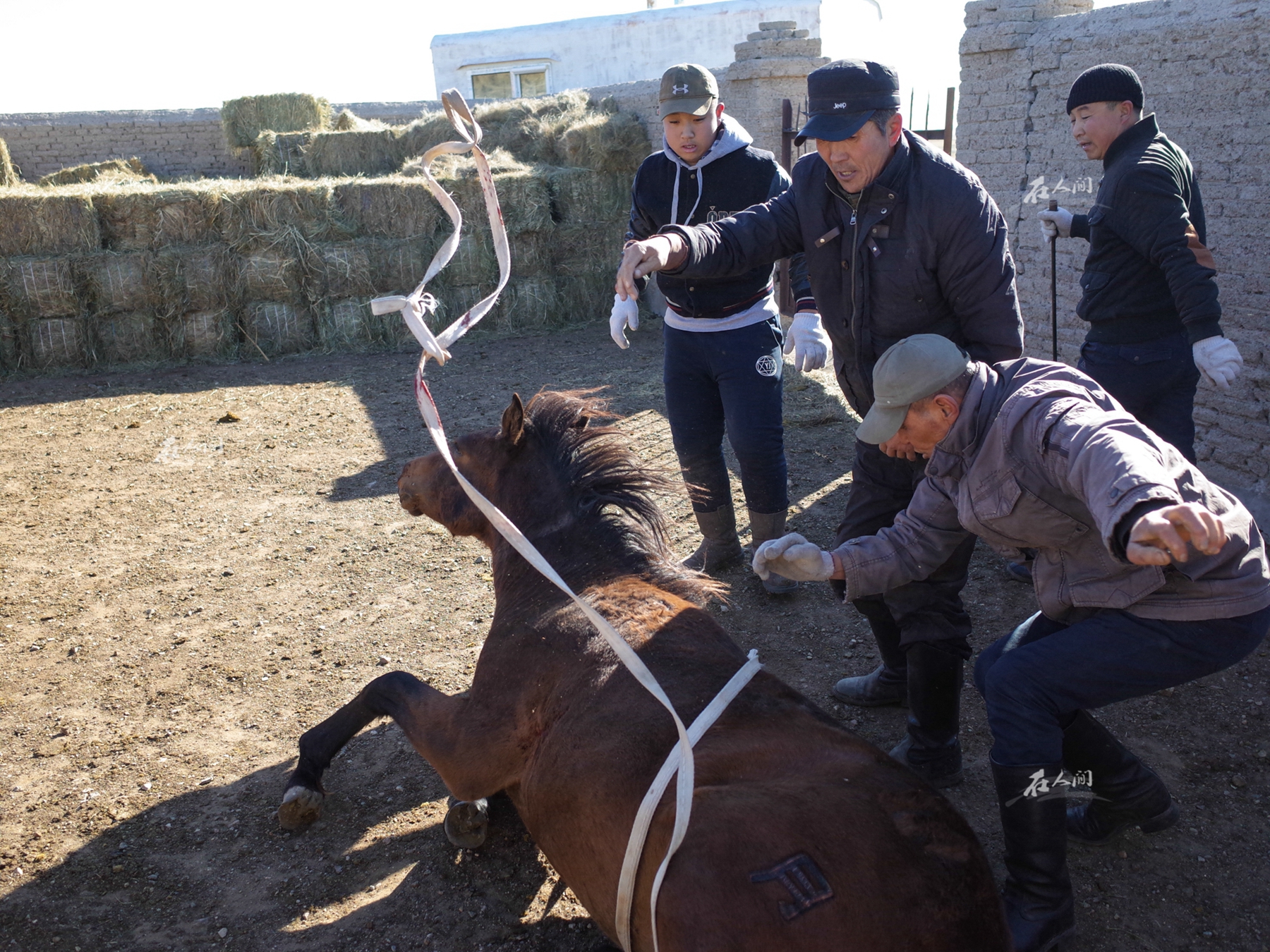 漫长的冬天即将过去,岳父与邻居们一起给马打马印。这是草原上最为常见的场景,团结互助,这是草原上的精神。
