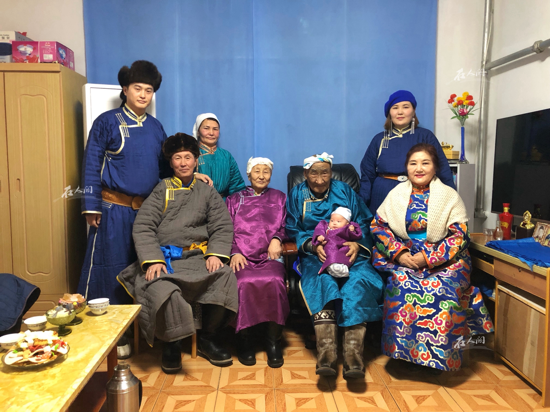 我的宝宝出生不久,我们在大年初一这一天拍了这张四世同堂的照片。人最为幸福的时刻,那便是与家人同在,想必此时此刻的岳父是最为幸福的父亲。左边第二位就是我的岳父,他是众多生活在草原上的牧民之一。 岳父是当地远近闻名的牧马人,他乐意助人,周边的邻居有什么困难他就会第一个去帮忙,大家都敬重他。他青春的岁月正是中国改革开放如火如荼的年代,但草原上有儿子传承自己家草场的传统,我岳父兄妹一共五个,他是老二,还有一个姐姐、三个妹妹。如果我岳父不回到草原上从事畜牧业,那自己的牧场将会无人照料。岳父最终没有选择到城市里工作,而是回到草原上,在呼伦贝尔草原的腹地,一个叫布鲁和木德的嘎查(村)生活着。