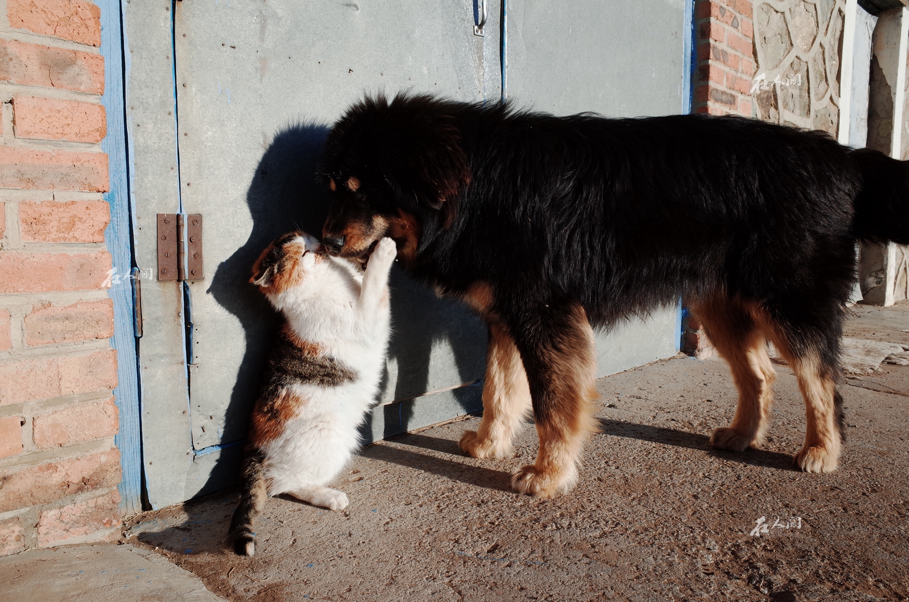 陪伴岳父和岳母生活的除了牛马羊以外,还有一只猫和一只蒙古獒,猫叫木乌日,蒙古语就是猫的意思,狗叫大黑。它们一直生活在室外,从来不会进入屋内,做着自己份内的事情,守护着它们的主人。蒙古獒很有领地意识,十分警觉,会对外来者发出警告;猫咪则会在房屋周边捕捉老鼠,保护主人食物的安全。