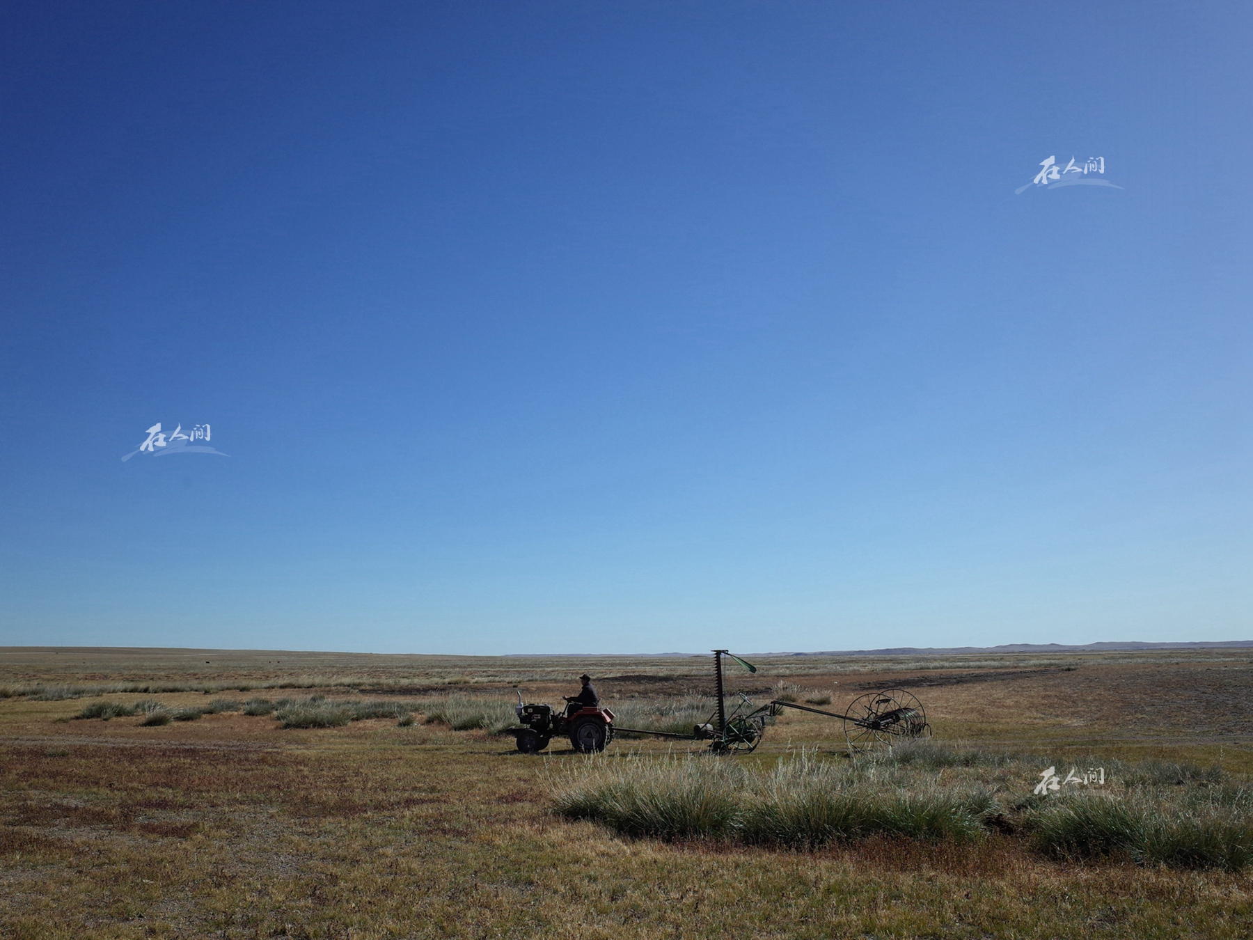 夏天短暂而又美好,岳父在调试自己的打草设备,准备迎接着秋初打草季。原来的草原上不需要打草,因为牧民会按照夏季的草场雨水的分布转场,让草原得到生息,让羊群吃到新鲜的植物,这是祖辈传下来的生存方式。然而,时间和空间的改变,让整个草原转换了生存的方式。网围栏和定牧的出现,让整个草原失去了活力,人与人之间的距离越来越大,草原被网格化。牧民只好会在夏末储备饲草,迎接冬日。