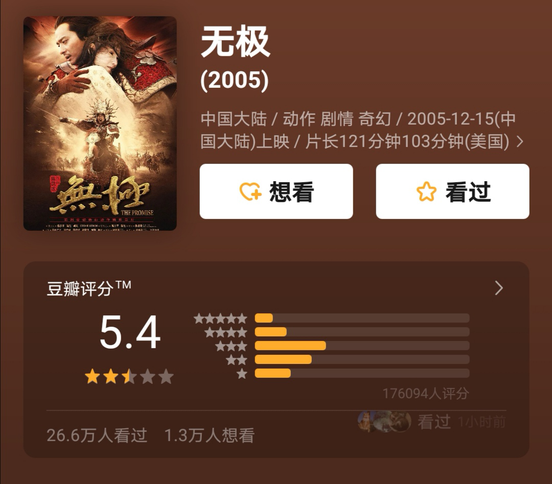 5.4分,是 《无极》在豆瓣的评分。